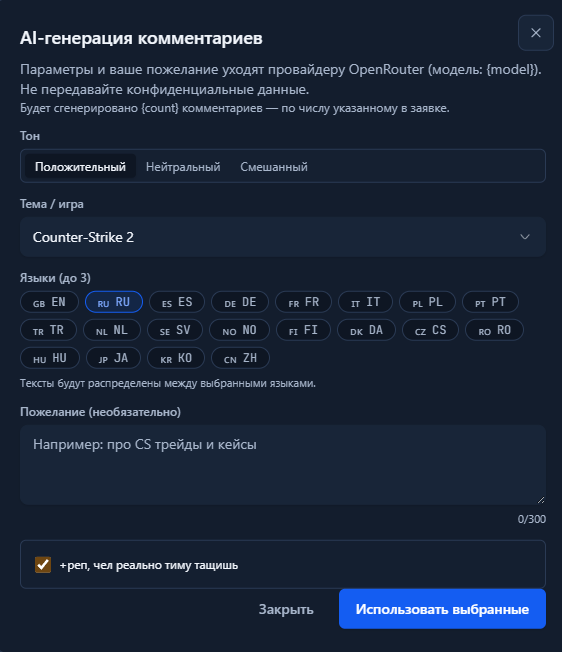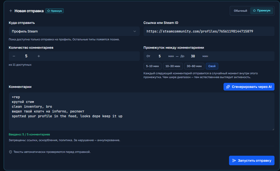 Welcome! Please follow the simple steps to place an order for comment baiting in Steam.